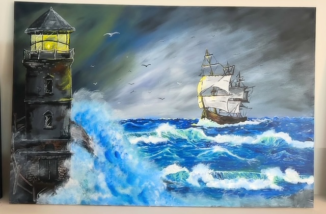 Jillian has been painting for almost 5 years, She always had a flare for drawing and art but got serious with painting during Covid. Jillian loves Nova Scotia and the beautiful sites inspire her daily, from relaxing sunsets to fierce storms. Jillian has painted for many charity events in her home town as well as New York City to give back to fire fighters. Acrylic is her medium of choice but she is having lots of fun with watercolour, painting shells and canvases. Working at Hags on the Hill has definitely been a highlight for Jillian.
