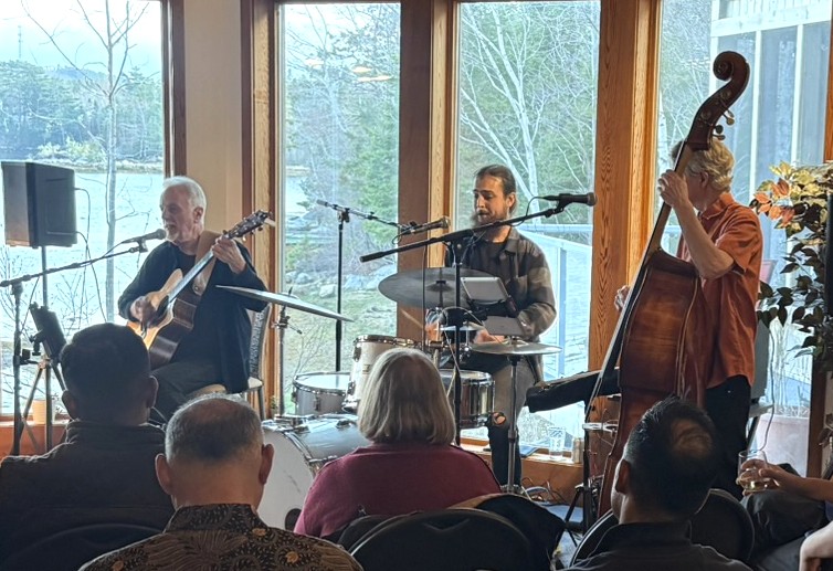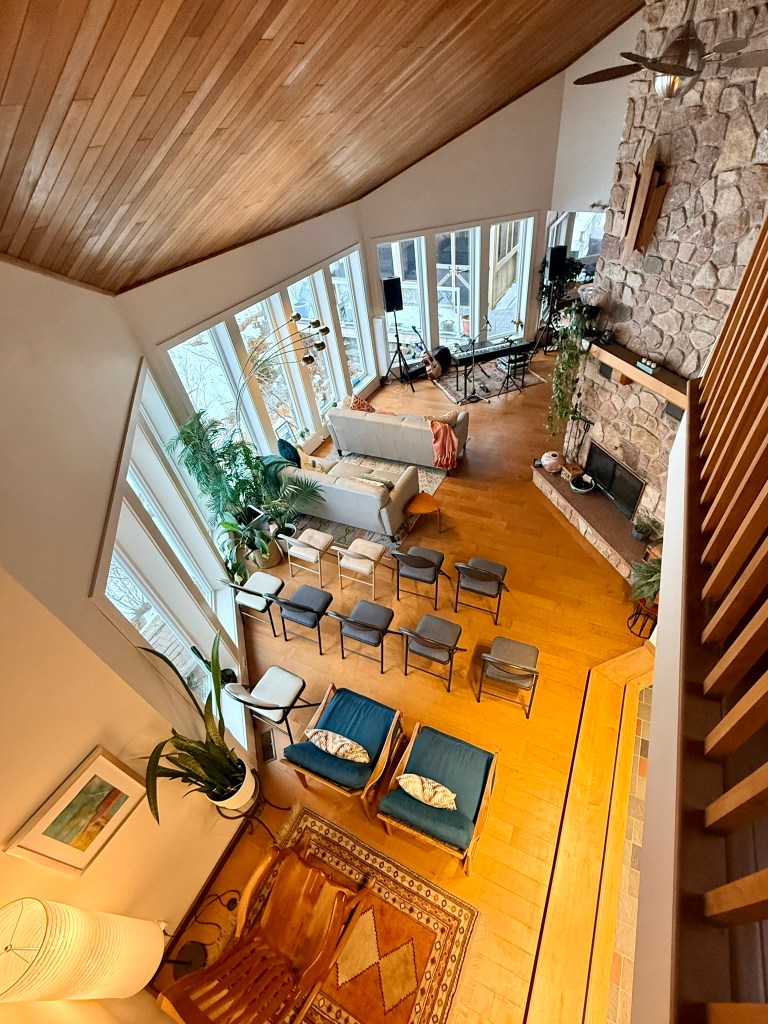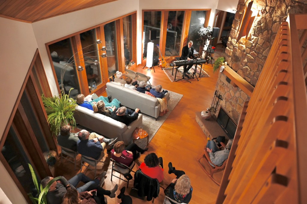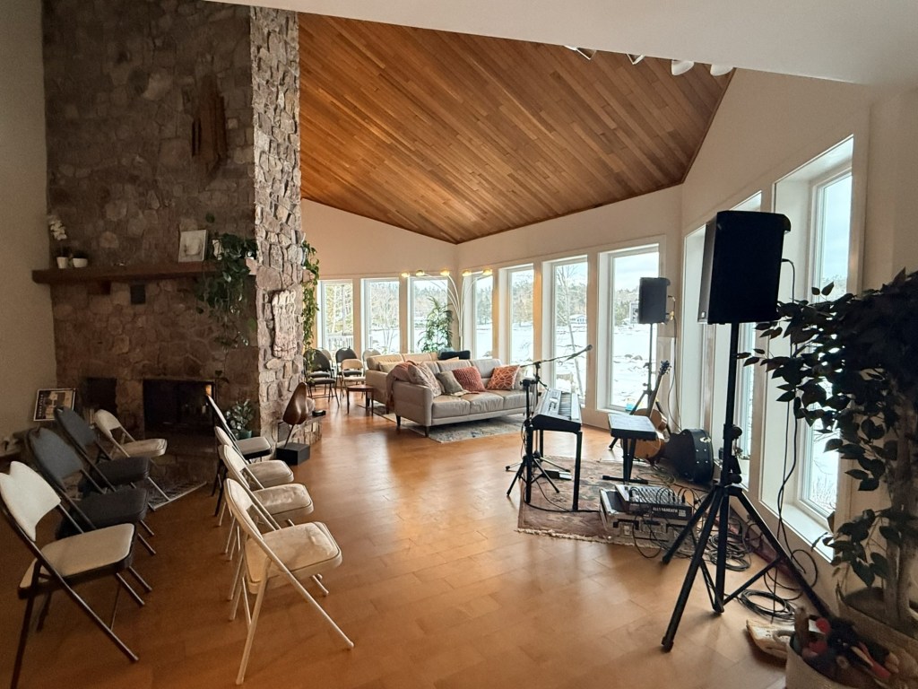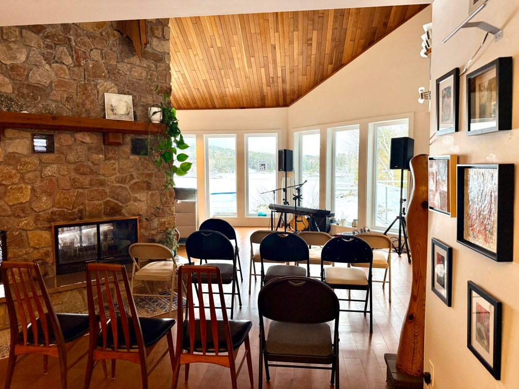 We began doing house concerts with a terrific folk signer (Greg Greenway) in 2010 when we lived in North Carolina, and decided to continue that tradition in Nova Scotia. We are fortunate to have a home with amazing acoustics – the former owner was an opera singer and so we think she had that in mind when she and her husband designed it! We can fit 40 people comfortably in the space, and because of the great acoustics, there is no bad place to sit.
